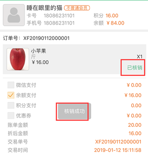 核銷完成后,訂單會顯示核銷成功,本次核銷完成。