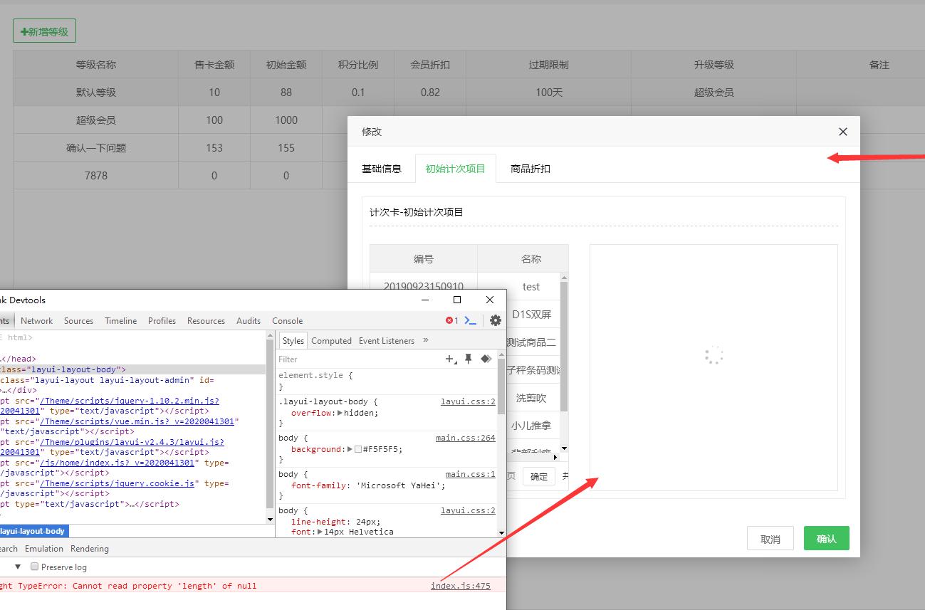 1.會員等級---修改會員等級時,初始計次項目出現(xiàn)加載報錯的情況;