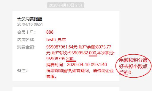 3.微信模板---消費推送模板的積分賬戶尾數(shù)為0.000,本次優(yōu)化去除小數(shù)點后的0;