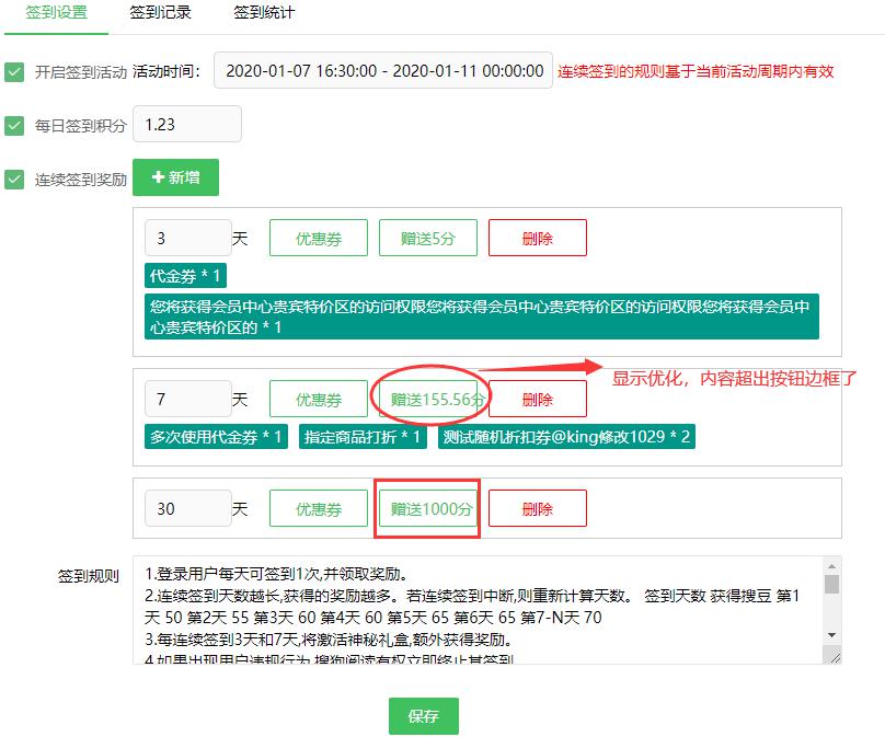 13.簽到設(shè)置---簽到設(shè)置界面,連續(xù)簽到獎勵的展示內(nèi)容優(yōu)化;