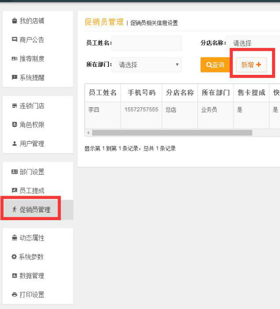 在主菜單【系統(tǒng)】--- 【系統(tǒng)設(shè)置】,點(diǎn)擊打開(kāi)【促銷(xiāo)員設(shè)置】,可以點(diǎn)擊新增,如圖: